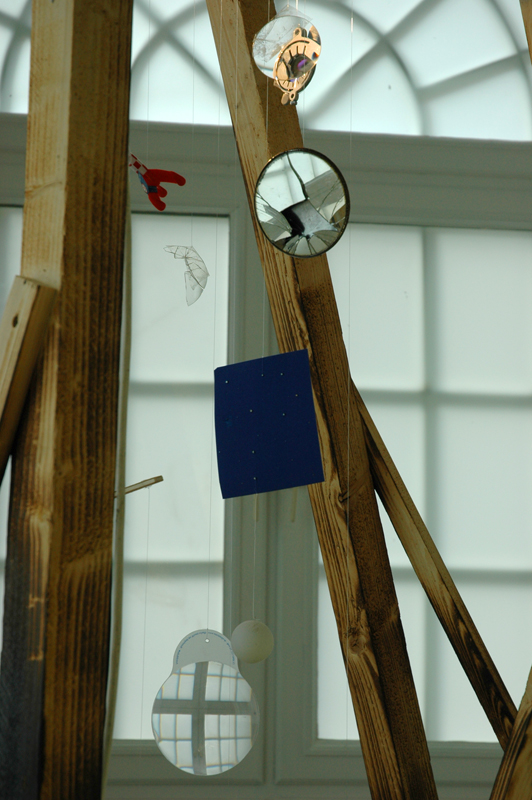 „Wer das weiß, mag ins Träumen geraten – so wie manch einer der hessischen Soldaten damals naiv von den Sternen geträumt hat, wie sie die Amerikanische Flagge dann zierten. Nach diesen Sternen greifen noch heute so viele Flüchtlinge an den gut bewachten amerikanischen Grenzen. Und mit ihnen „Der verzauberte Leutnant“ von Stefan Silies, der seine „Sockenpuppen“, die „LiveSocks“, von ihrer selbst gebastelten Sternwarte aus die Himmelskörper beobachten lässt. Sie stellen sich vor, was sie dort erwarten könnte und schicken ihren Besten los, nachzuschauen. Zwischen Himmel und Erde bleiben sie hängen, funken zur Erde, dass sie nicht näher herankämen. Dann sind sie nicht mehr zu verstehen … „Hallo, lieber Friedrich, …“ Leider gehört der Zwehrener Turm, der als Wehrturm und einstiges Stadttor den Schliff der mittelalterlichen Stadtfestung überdauerte und in das Fridericianum integriert wurde, nicht zu den Räumen des Kunstvereins. Ich hätte ihn gern Stefan Silies zur Verfügung gestellt, denn er war lange Zeit fürstliche Sternwarte, deren Gerätschaften noch heute im Technikmuseum zu besichtigen sind.“